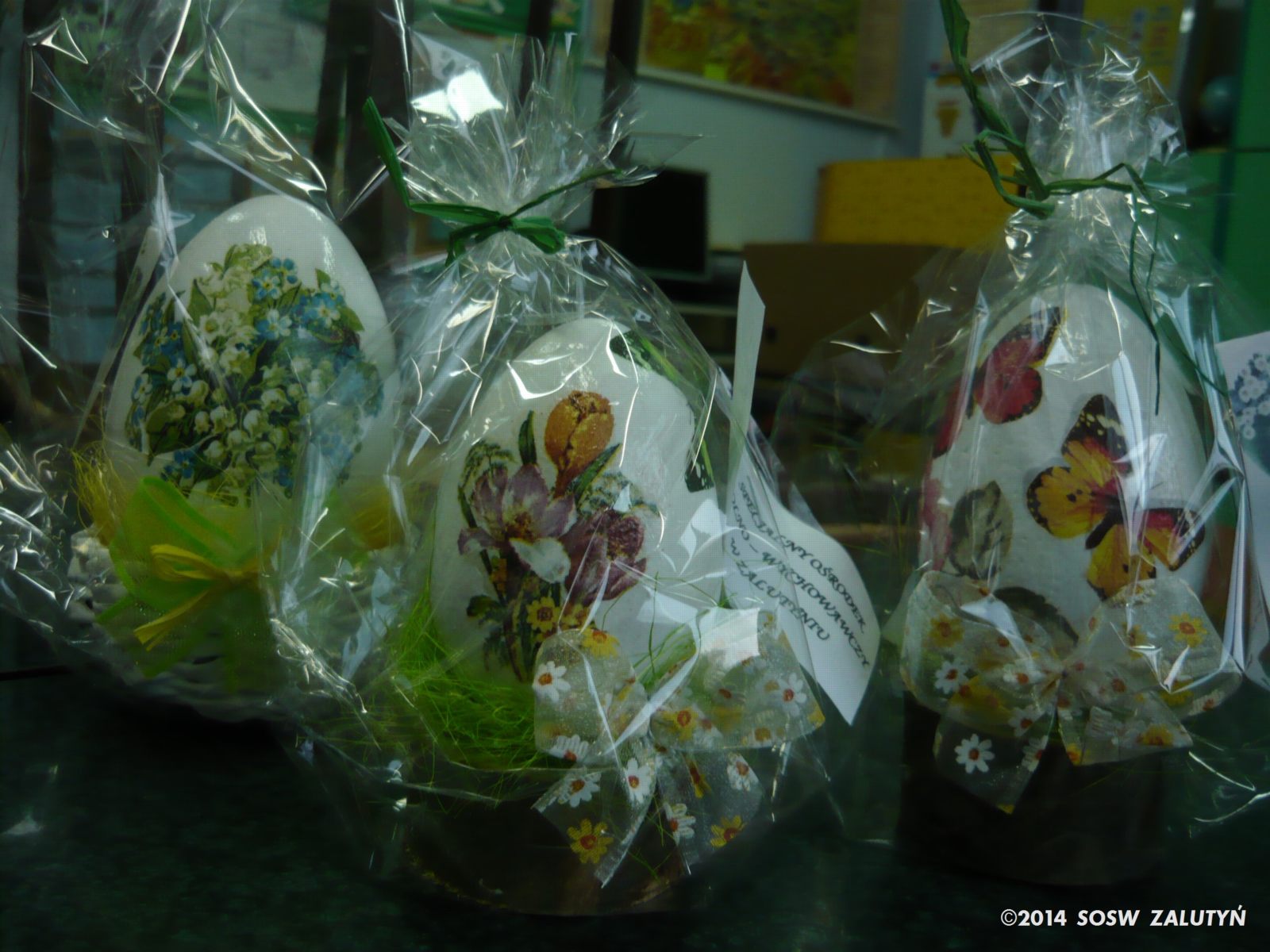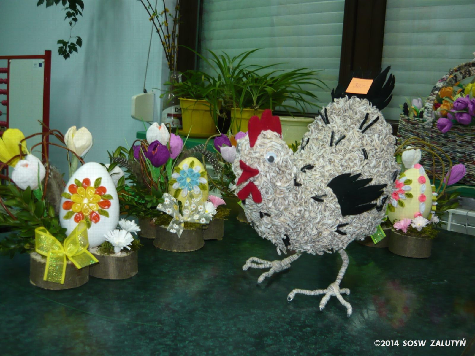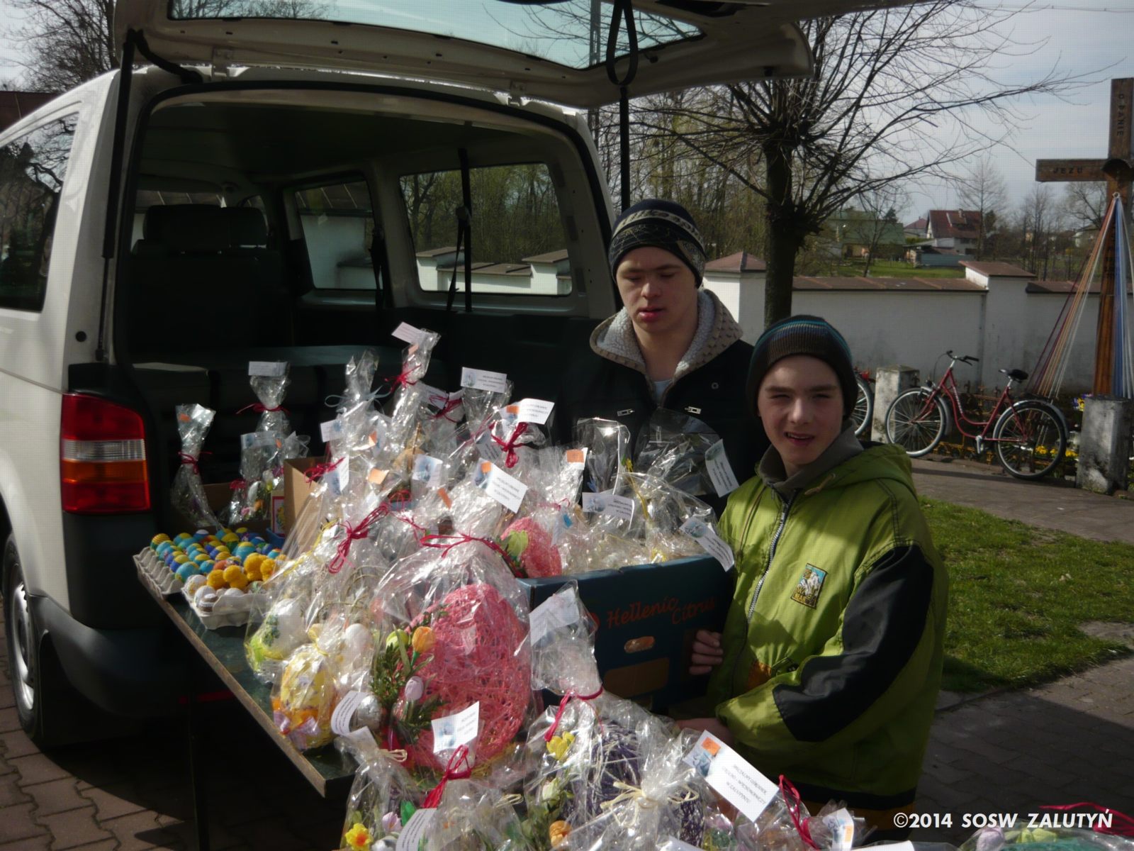 KIERMASZ WIELKANOCNY 2014 Po raz kolejny zaprosiliśmy mieszkańców Piszczaca i okolic na kiermasz wielkanocny, który odbył się 6 kwietnia przed kościołem parafialnym. Własnoręcznie wykonane ozdoby świąteczne, jak zawsze cieszyły się dużym zainteresowaniem kupujących. Kolorowe, wiosenne stroiki przyciągały uwagę wychodzących z kościoła - wielu z nich okazało swe uznanie, podziw i chęć wsparcia naszych wychowanków poprzez zakup ich wyrobów. W tym roku twórcy dołożyli szczególnych starań, by ozdoby świąteczne były oryginalne, okazałe, dopracowane i estetyczne. Niektóre z zastosowanych technik rękodzieła wymagały wielu godzin żmudnej pracy. Od kilku tygodni zwijaliśmy bibułę, paski do quillingu, malowaliśmy jaja, wykonywaliśmy kwiaty z krepiny. Podczas kiermaszu można było kupić między innymi: kartki świąteczne, jaja zdobione różnymi technikami, palmy wielkanocne, zajączki oraz różnego rodzaju stroiki. Pozyskane z ich sprzedaży środki pomogły w utworzeniu sali doświadczania świata oraz dofinansowaniu turnusu rehabilitacyjnego. W przygotowaniach do kiermaszu brali udział wychowankowie pod kierunkiem nauczycieli i wychowawców internatu. Swą pomoc zaoferowały również mama i babcia jednej z uczennic. Kolejny raz mogliśmy się przekonać, że wspólna praca, pasja i radość tworzenia mimo trudności i ograniczeń zawsze prowadzi do wymiernych efektów.