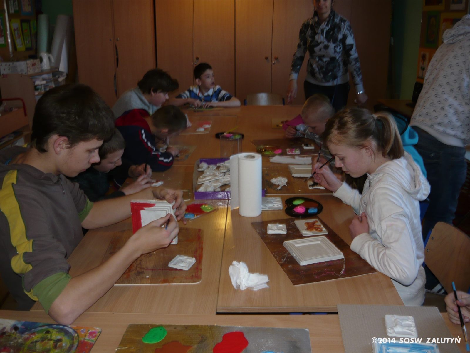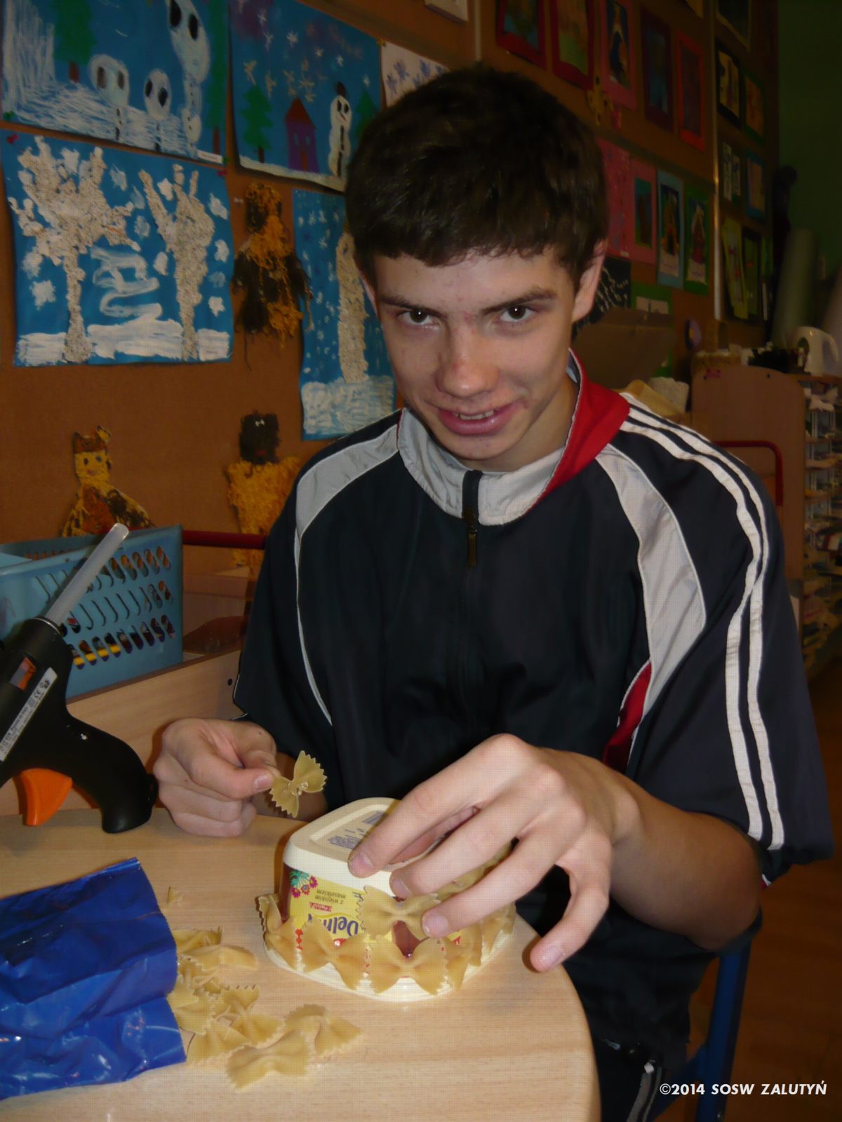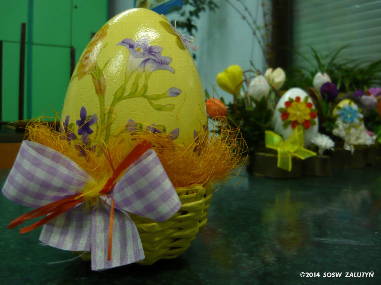 KIERMASZ WIELKANOCNY 2014 Po raz kolejny zaprosiliśmy mieszkańców Piszczaca i okolic na kiermasz wielkanocny, który odbył się 6 kwietnia przed kościołem parafialnym. Własnoręcznie wykonane ozdoby świąteczne, jak zawsze cieszyły się dużym zainteresowaniem kupujących. Kolorowe, wiosenne stroiki przyciągały uwagę wychodzących z kościoła - wielu z nich okazało swe uznanie, podziw i chęć wsparcia naszych wychowanków poprzez zakup ich wyrobów. W tym roku twórcy dołożyli szczególnych starań, by ozdoby świąteczne były oryginalne, okazałe, dopracowane i estetyczne. Niektóre z zastosowanych technik rękodzieła wymagały wielu godzin żmudnej pracy. Od kilku tygodni zwijaliśmy bibułę, paski do quillingu, malowaliśmy jaja, wykonywaliśmy kwiaty z krepiny. Podczas kiermaszu można było kupić między innymi: kartki świąteczne, jaja zdobione różnymi technikami, palmy wielkanocne, zajączki oraz różnego rodzaju stroiki. Pozyskane z ich sprzedaży środki pomogły w utworzeniu sali doświadczania świata oraz dofinansowaniu turnusu rehabilitacyjnego. W przygotowaniach do kiermaszu brali udział wychowankowie pod kierunkiem nauczycieli i wychowawców internatu. Swą pomoc zaoferowały również mama i babcia jednej z uczennic. Kolejny raz mogliśmy się przekonać, że wspólna praca, pasja i radość tworzenia mimo trudności i ograniczeń zawsze prowadzi do wymiernych efektów.