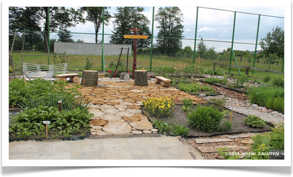OGRÓDEK SENSORYCZNY W tym roku szkolnym nasz Ośrodek wzbogacił się o dwie nowe formy terapii: - ogródek sensoryczny i Salę Doświadczania Świata. Pomysłodawczynią i projektantką ogródka sensorycznego jest p. Wanda Pietruczuk. Wykonanie jest dziełem wspólnej pracy pani Dyrektor, nauczycieli, wychowawców i przede wszystkim uczniów, którzy z ochotą zabrali się do pracy. Ogródek sensoryczny, to miejsce, w którym nasi uczniowie mogą wszystkimi zmysłami odkrywać piękno otaczającego ich świata. Mogą patrzeć, wąchać, dotykać posadzone rośliny. Struktura odpowiednio przygotowanych alejek umożliwia dotykanie różnych powierzchni, struktur i materiałów, co znakomicie stymuluje zmysł dotyku. Nasi uczniowie uczą się odróżniać poszczególne rośliny, wiedzą także jak można je wykorzystać w życiu codziennym. Codzienna troska o ogródek sprzyja także kształtowaniu odpowiedzialności oraz uczy szacunku dla dobra wspólnego.