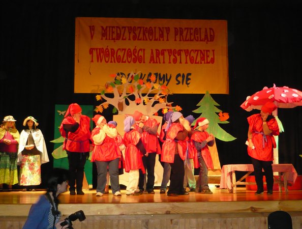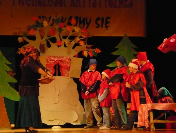 To był nasz kolejny występ dla większej publiczności. Tym razem pokazaliśmy przedstawienie pod tytułem „Baśń o krasnoludkach stąd”. Wszystkim bardzo się podobało. Pani Basia Brodacka - reżyser i scenarzysta naszego przedstawienia - udzielała wywiadów prasie. Lubimy takie wyjazdy.