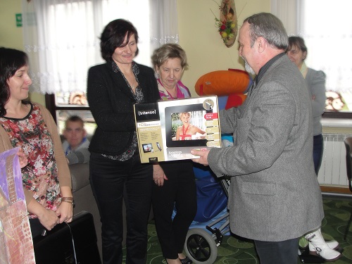 Uczniowie otrzymali pendrivy, żelowe podkładki i długopisy. Nauczyciel prowadzący pani Beata Mirońska otrzymała skórzaną teczkę, a nagrodę dla szkoły - cyfrową ramkę - odebrała pani dyrektor Bożena Guz.