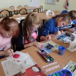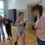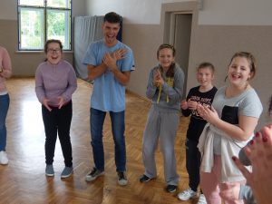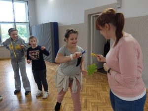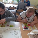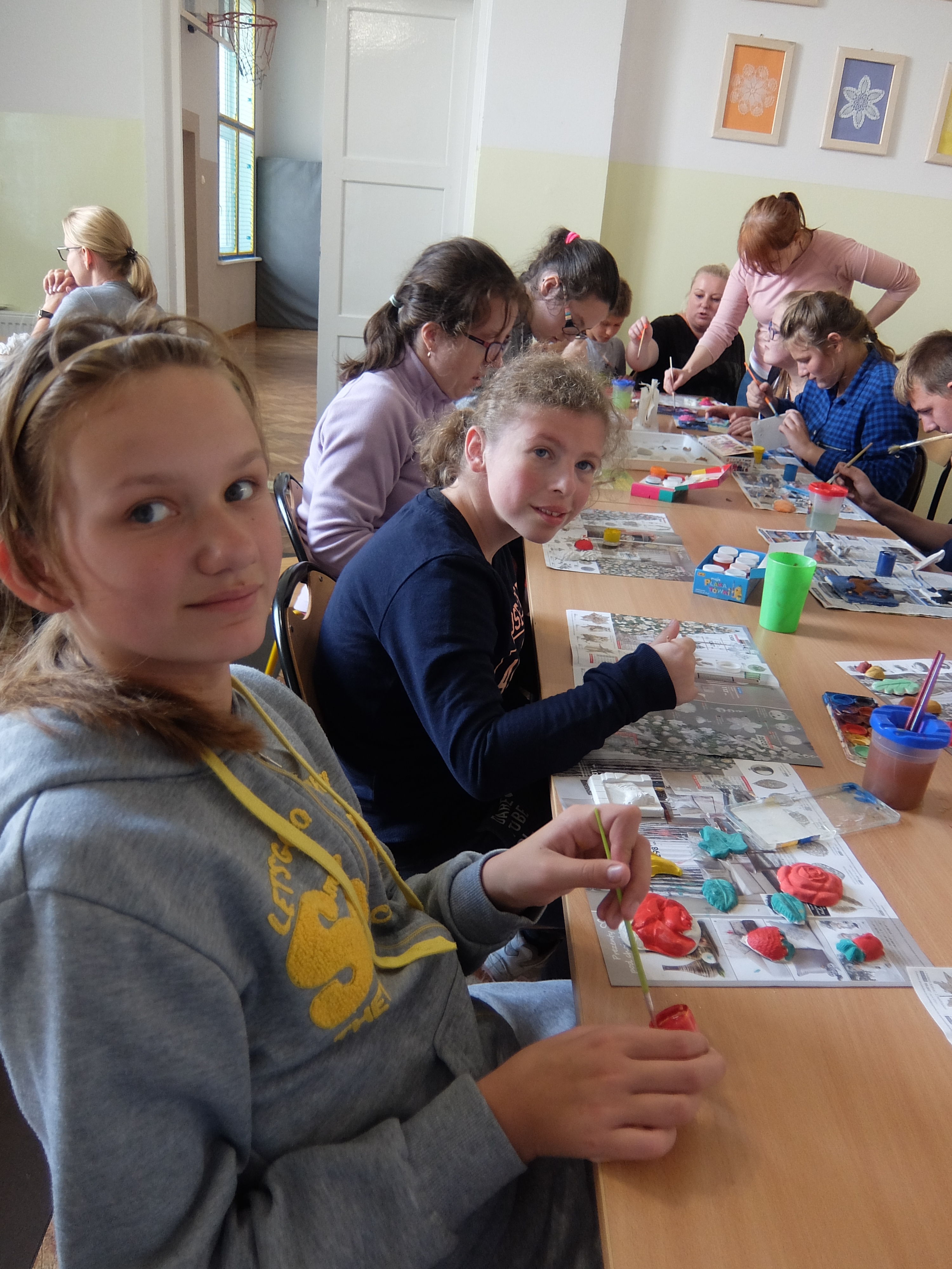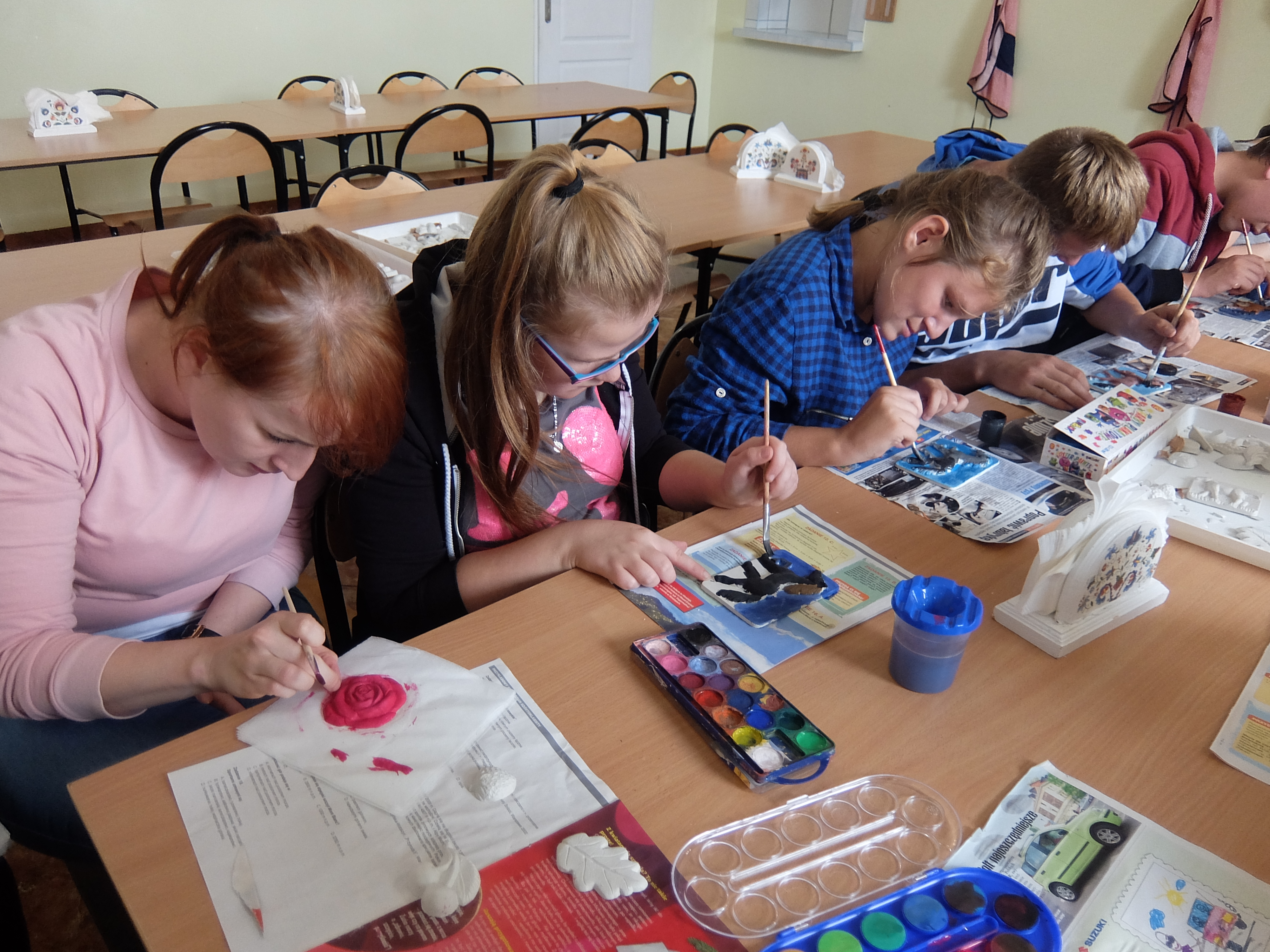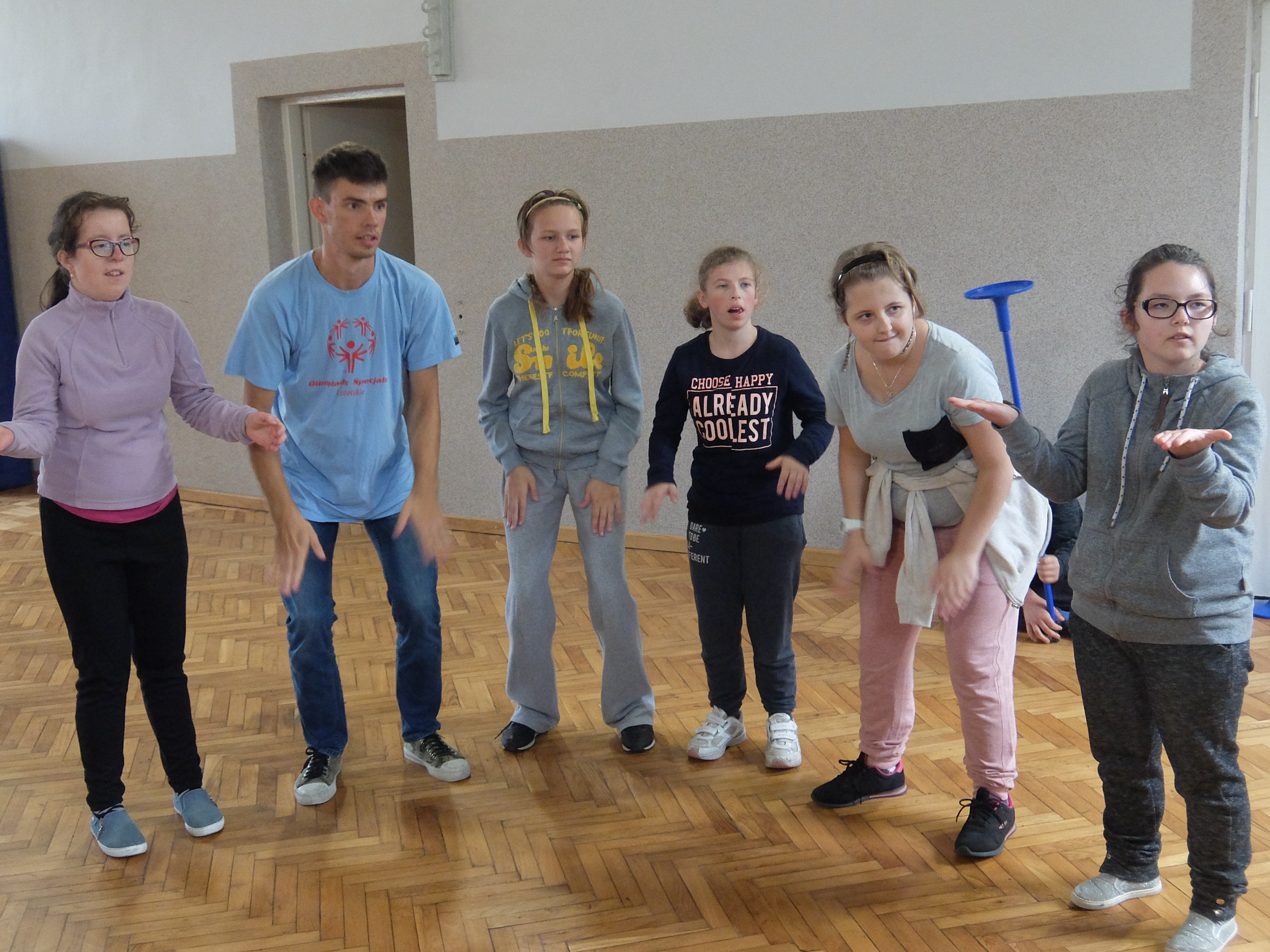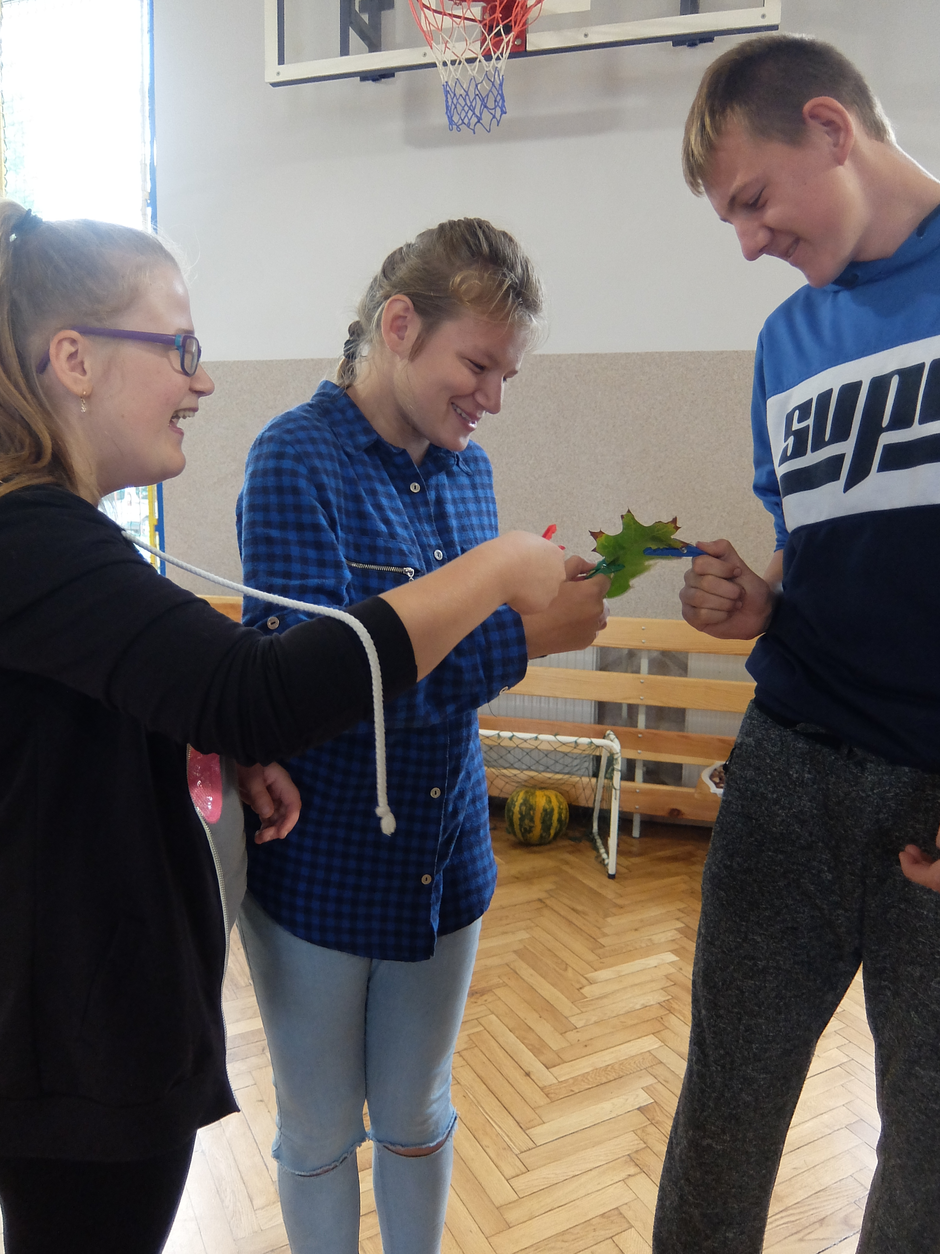 Dnia 22 września do naszego Ośrodka zawitali goście z zaprzyjaźnionego Specjalnego Ośrodka Szkolno – Wychowawczego w Międzyrzecu Podlaskim. Przyjechało do nas pięciu wychowanków z Paniami: Izabelą Korolczuk     i Karoliną Lecyk. Dla nich to była wielka wyprawa – przybyli  pociągiem  do Chotyłowa, a następnie spacerkiem przez Zalutyń dotarli do naszego Ośrodka. Powitaliśmy ich serdecznie. Na początek rozpaliliśmy ognisko,  na którym piekliśmy kiełbaski. Po posiłku nastąpił czas zabaw i konkursów, w których rekwizytami były „dary jesieni” – dynie, liście, kasztany. Śmiechu było co nie miara. Na zakończenie spotkania panie Agnieszka Lewkowicz i Joanna Kulawczuk przeprowadziły zajęcia plastyczne – malowaliśmy przygotowane wcześniej odlewy gipsowe, oczywiście również w klimacie jesiennym.