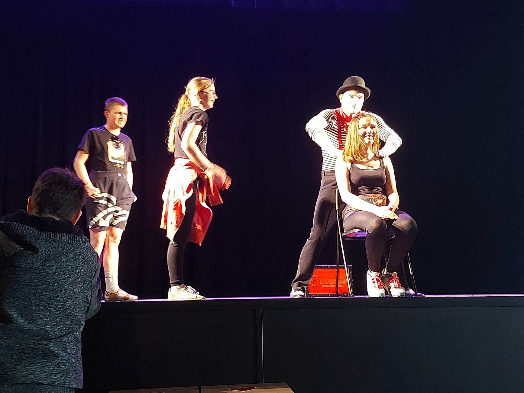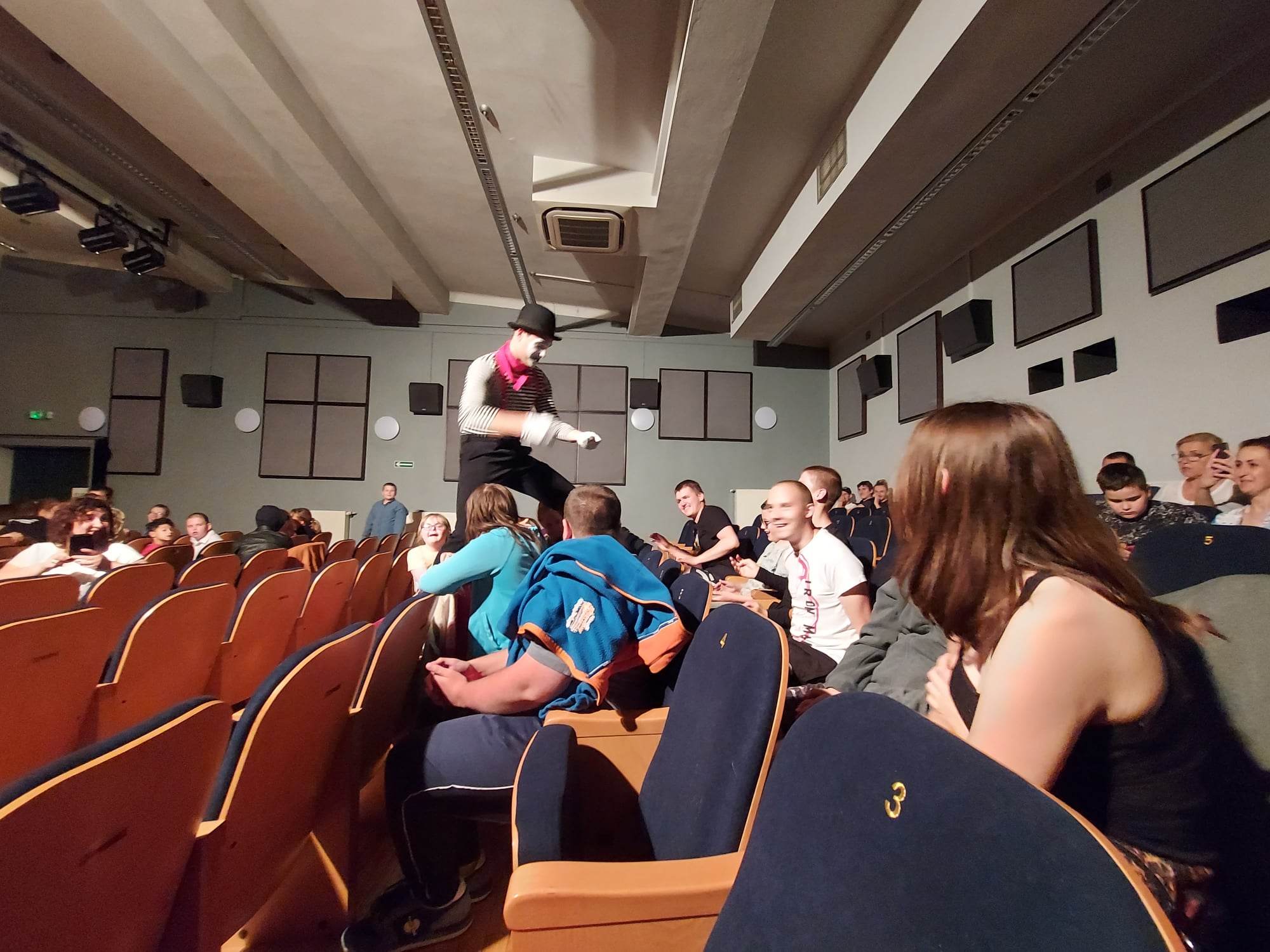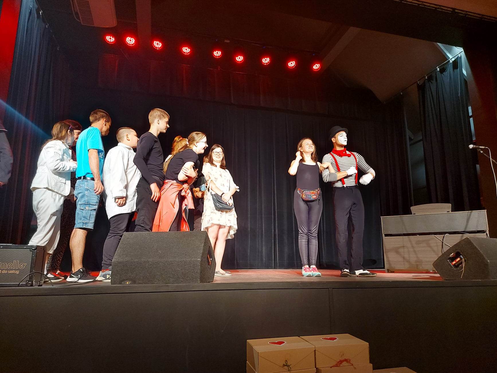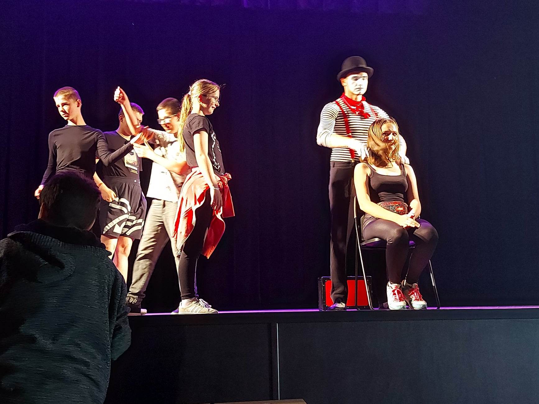 Podczas oczekiwania na werdykt jury wystąpił przed publicznością przezabawny mim – jego popisy tak zachwyciły naszych uczniów, że śmiało ruszyli na scenę, aby mu towarzyszyć i nabrać nowych umiejętności scenicznych …