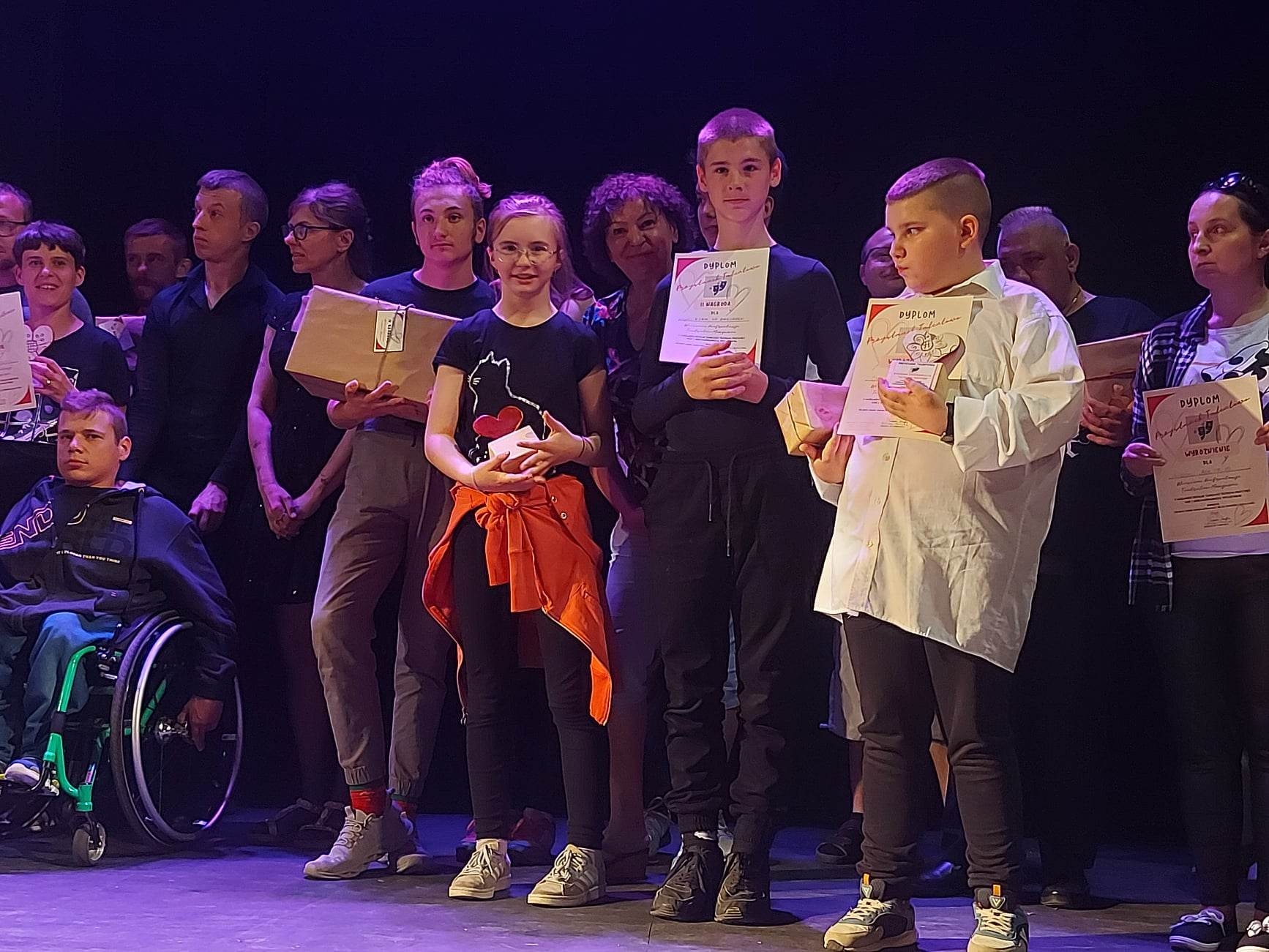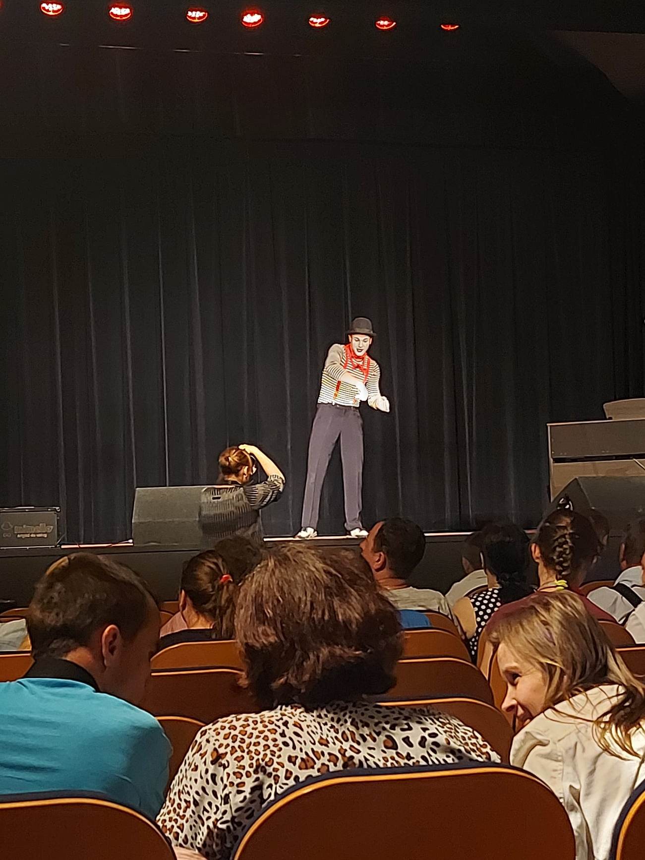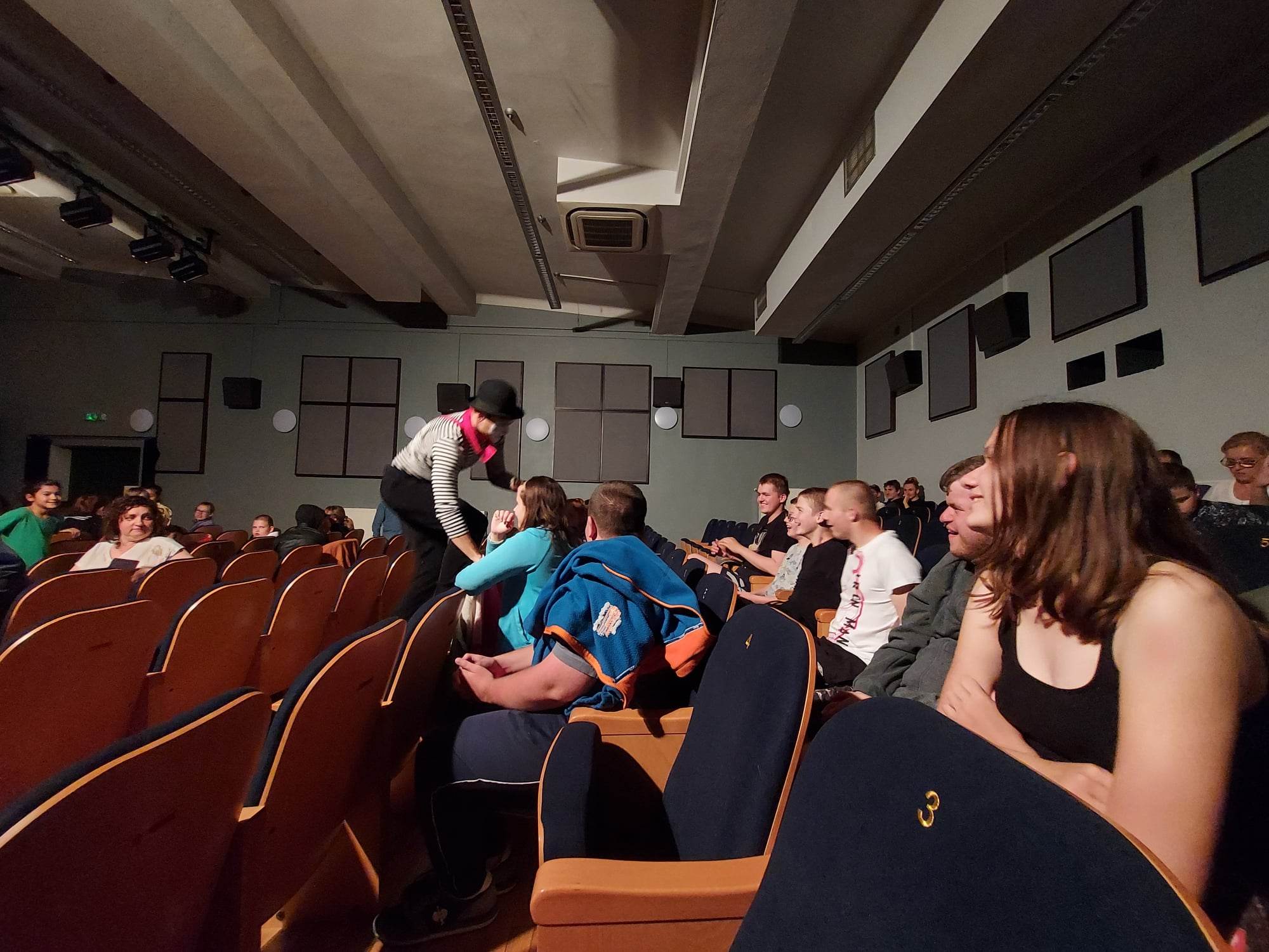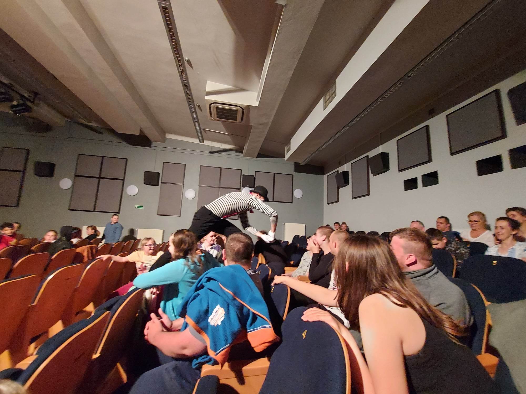 Podczas oczekiwania na werdykt jury wystąpił przed publicznością przezabawny mim – jego popisy tak zachwyciły naszych uczniów, że śmiało ruszyli na scenę, aby mu towarzyszyć i nabrać nowych umiejętności scenicznych …